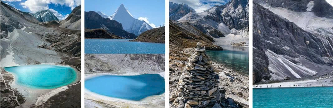 Nằm ở độ cao 4.400 mét so với mặt nước biển, Á Đinh được mệnh danh là “thiên đường cuối cùng ở nhân gian”, Á Đinh là một quần thể thiên nhiên bao gồm những hồ nước lấp lánh như trân châu, những ngọn thác hùng vỹ xen lẫn trong những rừng cây lá kim tuyệt đẹp, những ngọn núi tuyết vĩnh cửu ngạo nghễ giữa trời xanh, những đàn nai rừng gặm cỏ dạn dĩ như chỗ không người… Hồ Sữa – Hồ Ngũ Sắc 2 điểm cũng không thể bỏ qua khi đến khu thắng cảnh Á Đinh. Quý khách có thể cưỡi ngựa rong ruổi trên những con đường mòn, qua những cánh rừng thông tuyệt đẹp, những ngọn thác tung bọt trắng xóa, ngắm những ngôi nhà Tạng lấp xấp bên đường để đến Hồ Sữa. Hồ Ngọc Trai là hồ thánh thấp nhất ở khu bảo tồn thiên nhiên Daocheng Yading nằm ở độ cao 4.100 mét so với mực nước biển. Hồ được hình thành do tuyết tan trên núi Xiannairi. Á Đinh cũng nổi tiếng với vẻ đẹp như ở xứ sở thần tiên, bao gồm: Cảnh quan núi tuyết độc đáo nhất là quanh 3 ngọn núi thiêng Xiannairi, Youmayon và Xanoda cao chót vót, đỉnh núi tuyết phủ trắng xóa quanh năm. Cùng những đồng cỏ nguyên sơ vùng núi cao, sông và hồ băng ngoạn mục. Buổi trưa: Quý khách dùng bữa trưa tại trạm dừng nghỉ trong khu trekking hoặc HDV sẽ chuẩn bị cơm tự sôi.